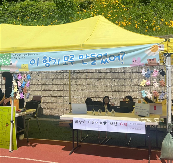 주요 활동으로는 축제 시즌에 맞춰 부원들이 함께 모여 키링,비즈 악세사리, 모루 인형, 디퓨저, 향초 등 다양한 수공예품을 직접 제작하고 이를 판매하는 축제 부스를 운영하고 있습니다.