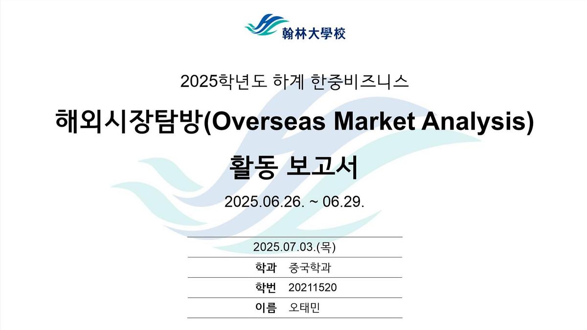 2025 한중비즈니스전공 다롄 및 하얼빈 해외시장분석 (오태민)
