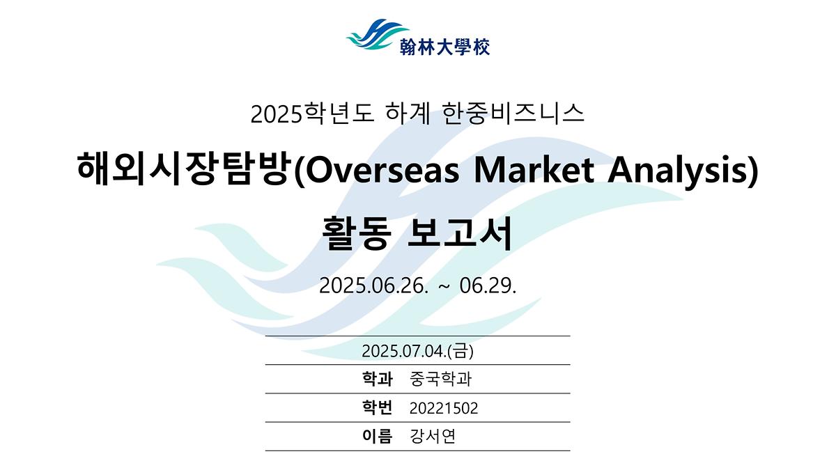 2025 한중비즈니스전공 다롄 및 하얼빈 해외시장분석 (강서연)