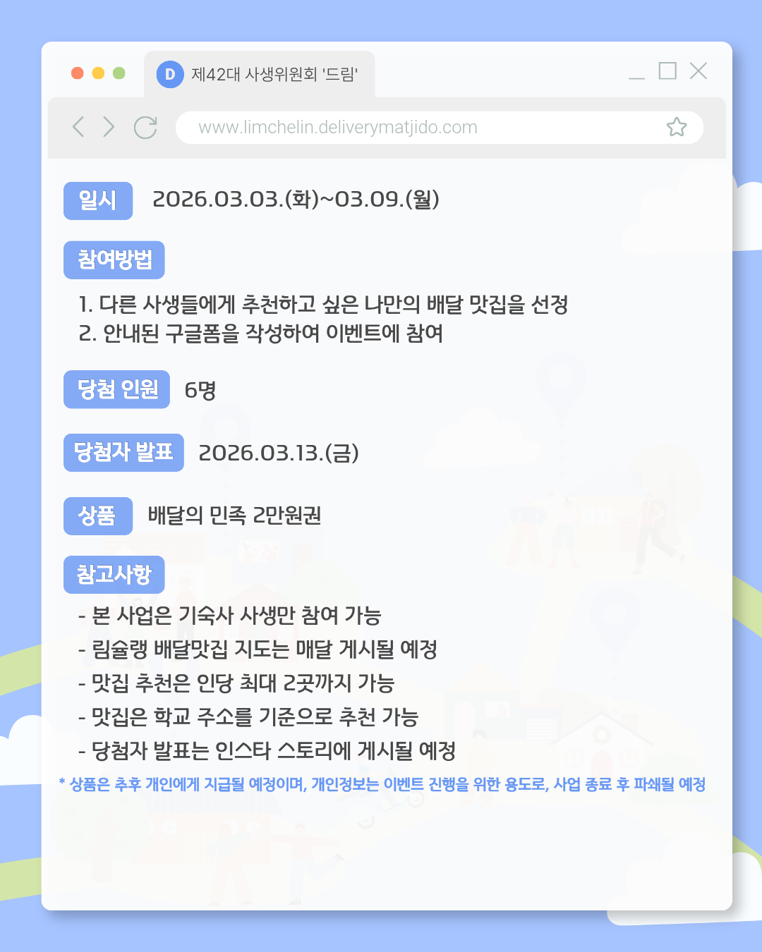 [드림💫]림슐랭 배달 맛지도: 여러분만의 배달 맛집을 추천해주세요!/이벤트 사업 안내
