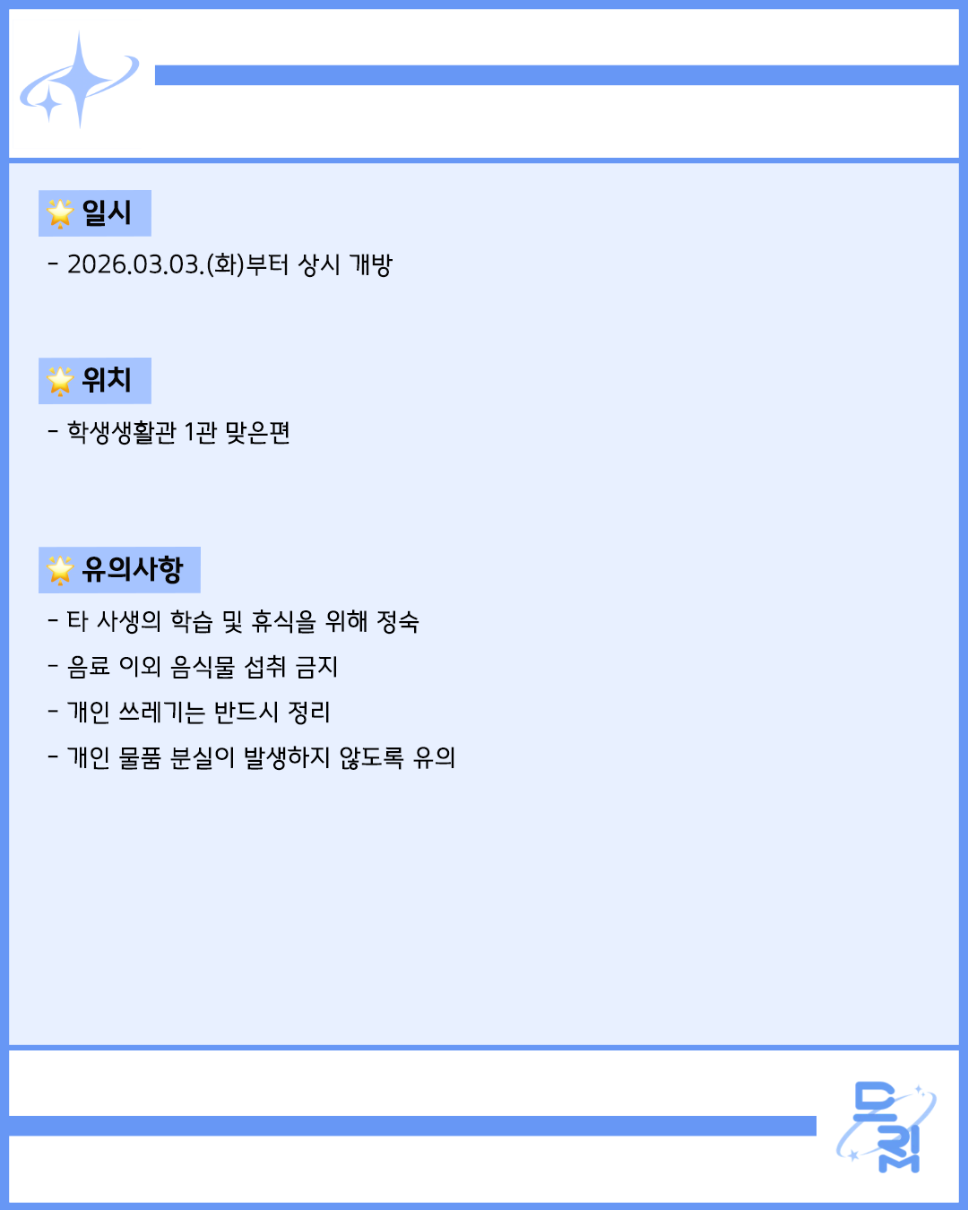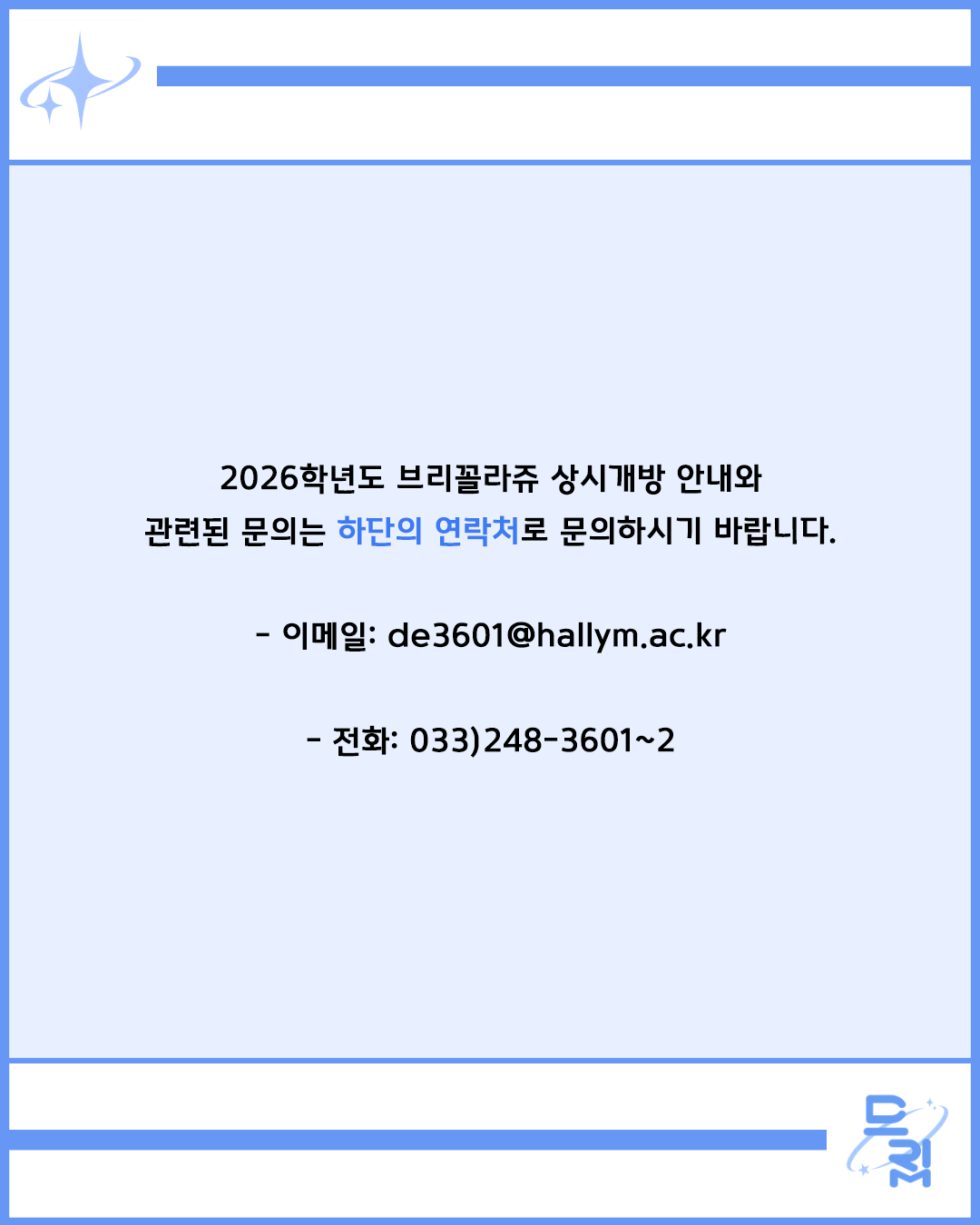 [드림💫]2026학년도 브리꼴라쥬 24시간 상시 개방 안내