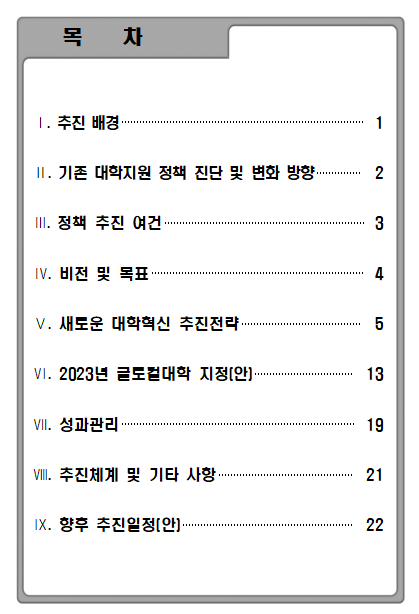 2023. 04. 18. 교육부에서 공개한「글로컬대학30 추진방안」입니다.