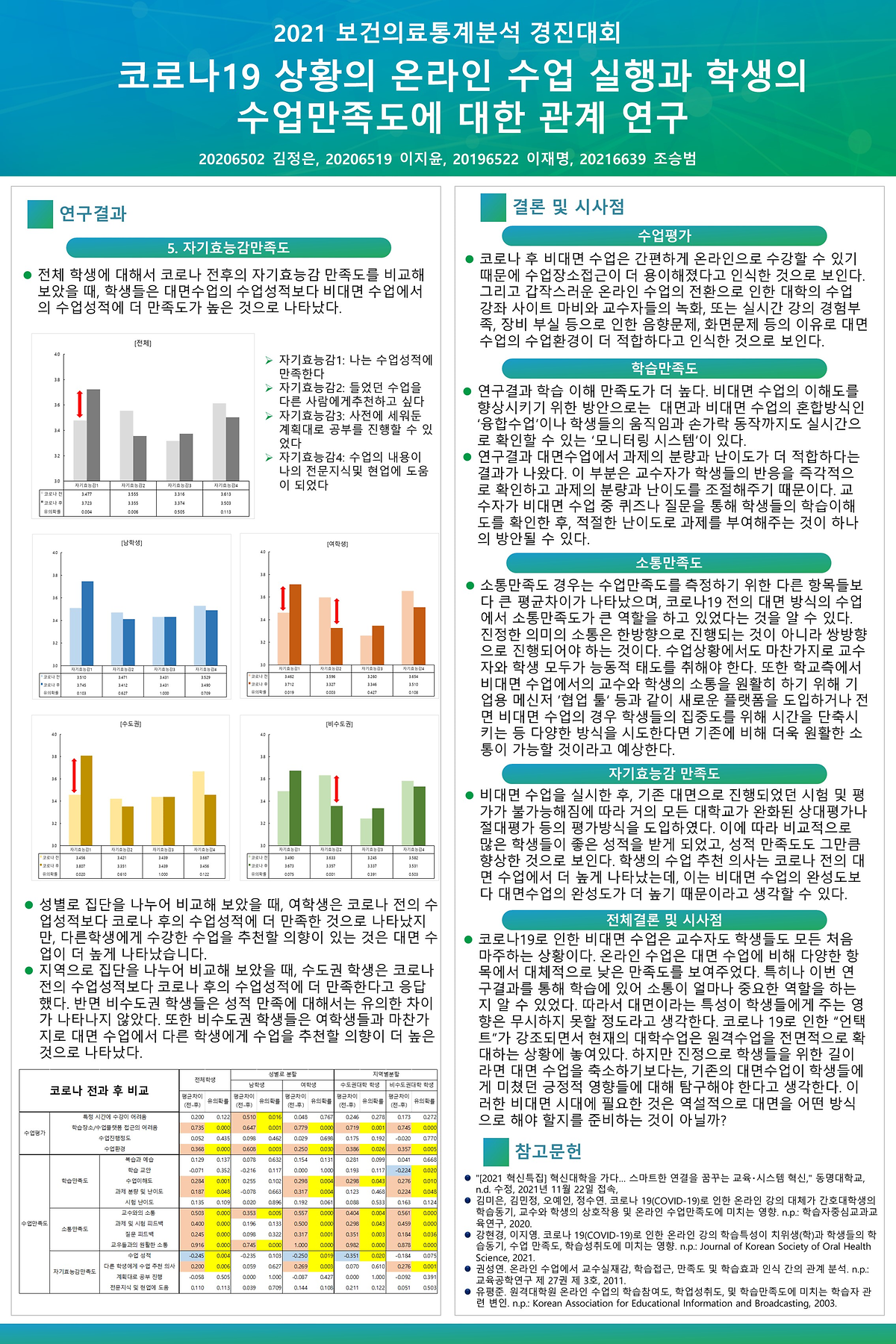 [2021 보건의료통계분석 경진대회] 코로나19 상황의 온라인 수업 실행과 학생의 수업만족도에 대한 관계 연구