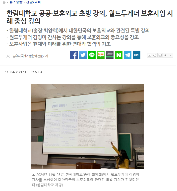 한림대학교 평화안보 보훈과 공공외교 초빙 강의, 월드투게더 보훈사업 사례 중심 강의