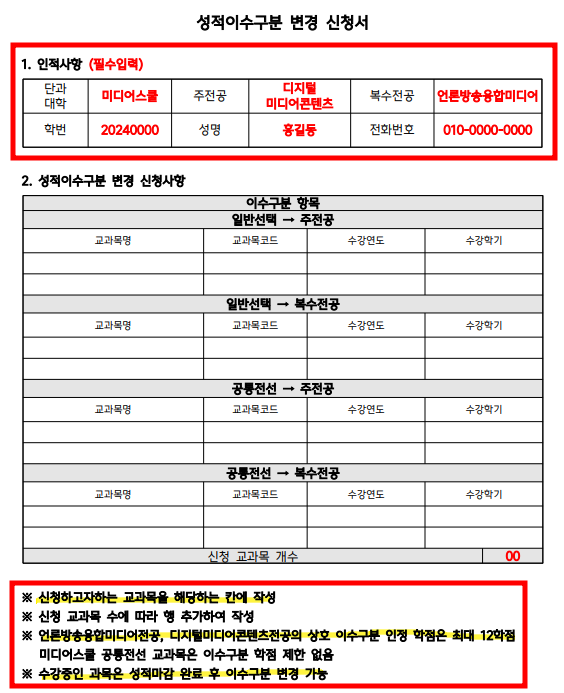 2) 교학팀에서 취합하여 교무팀으로 요청하여 변경처리합니다.