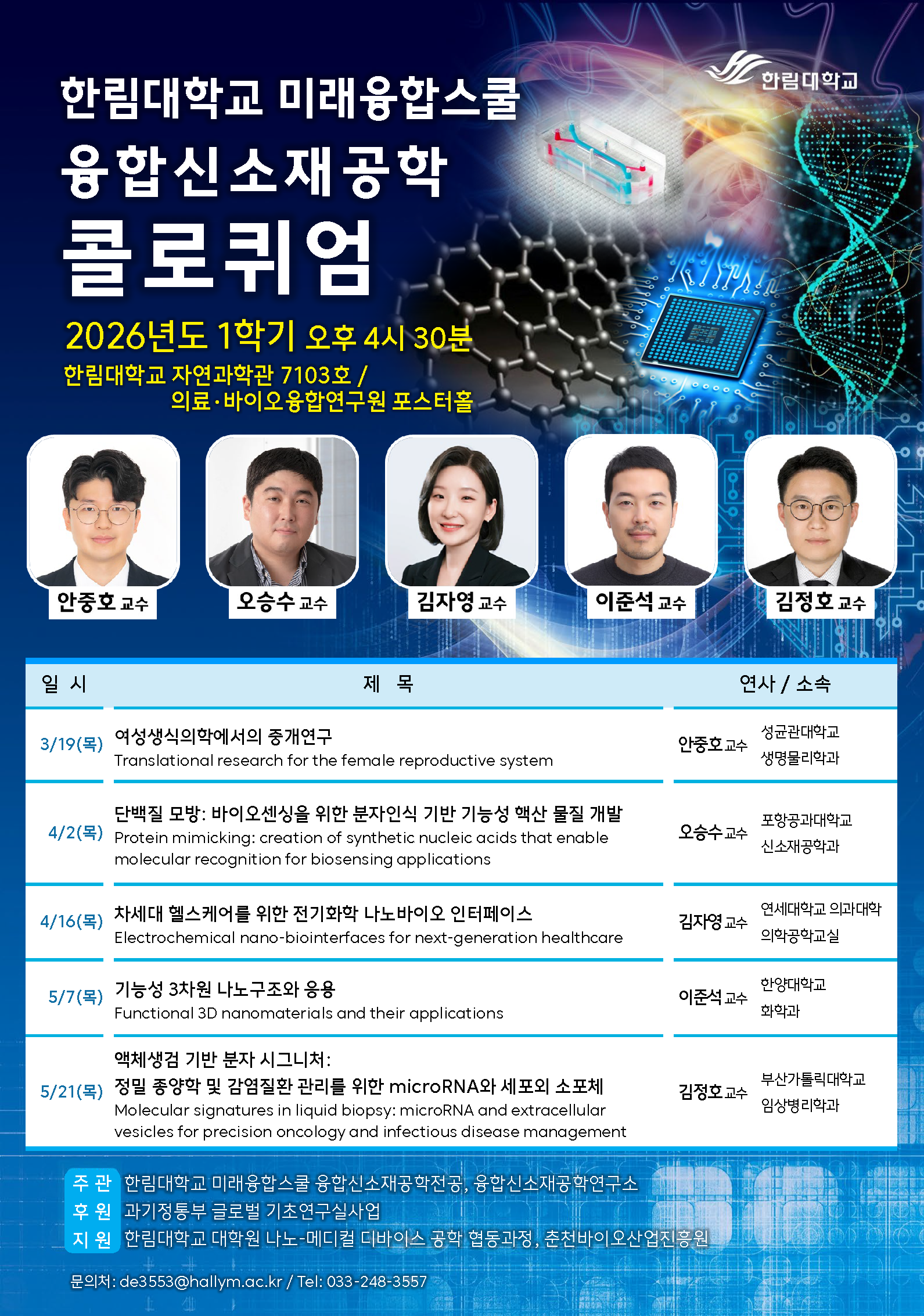 2026년 1학기 신소재특강I 연사 및 주제를 안내해드립니다.