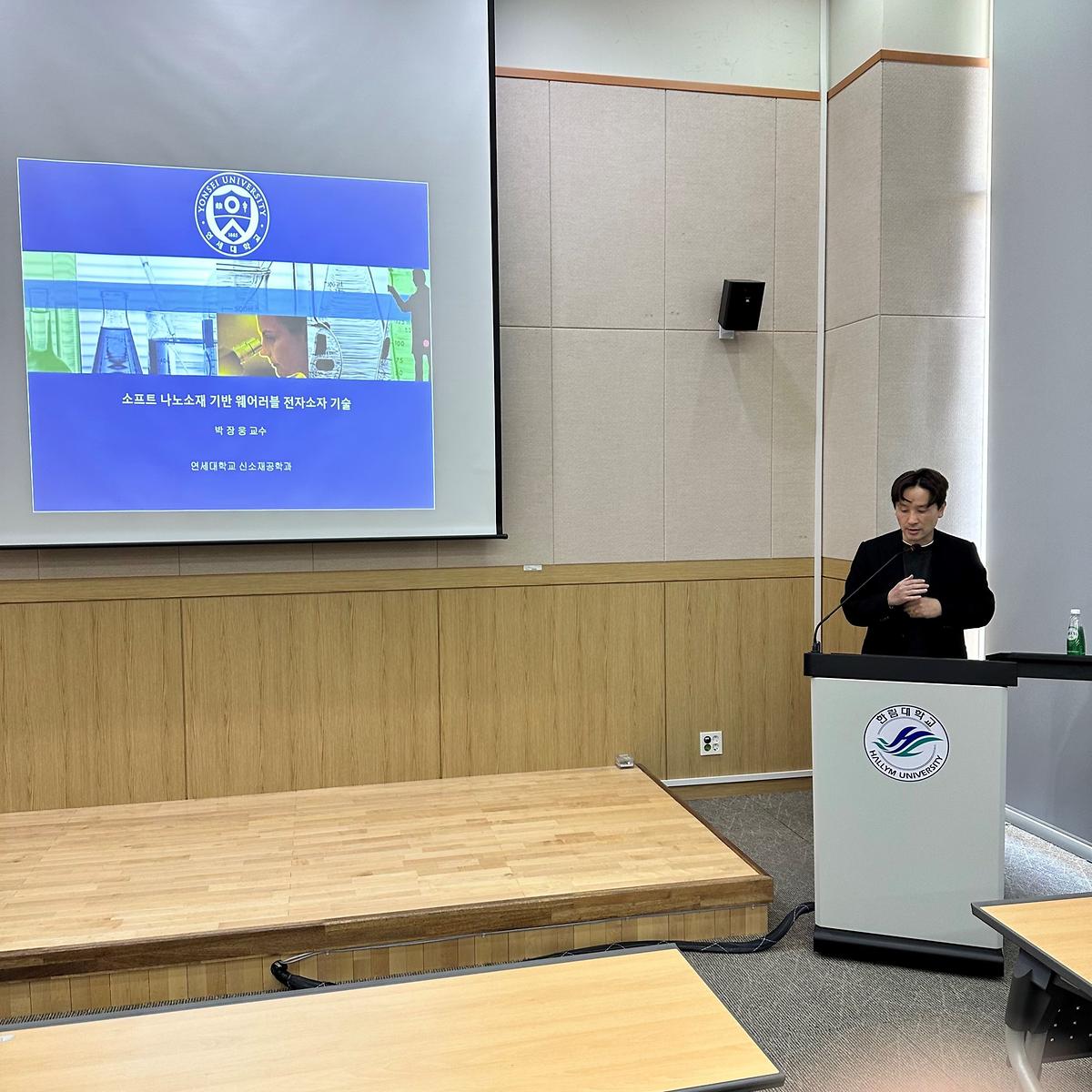 이번 기술교류회는 연세대학교 신소재공학부 박장웅 교수를 연사로 모시고 '소프트 나노소재 기반 웨어러블 전자소자 기술 '를 주제로 강연이 진행되었다.