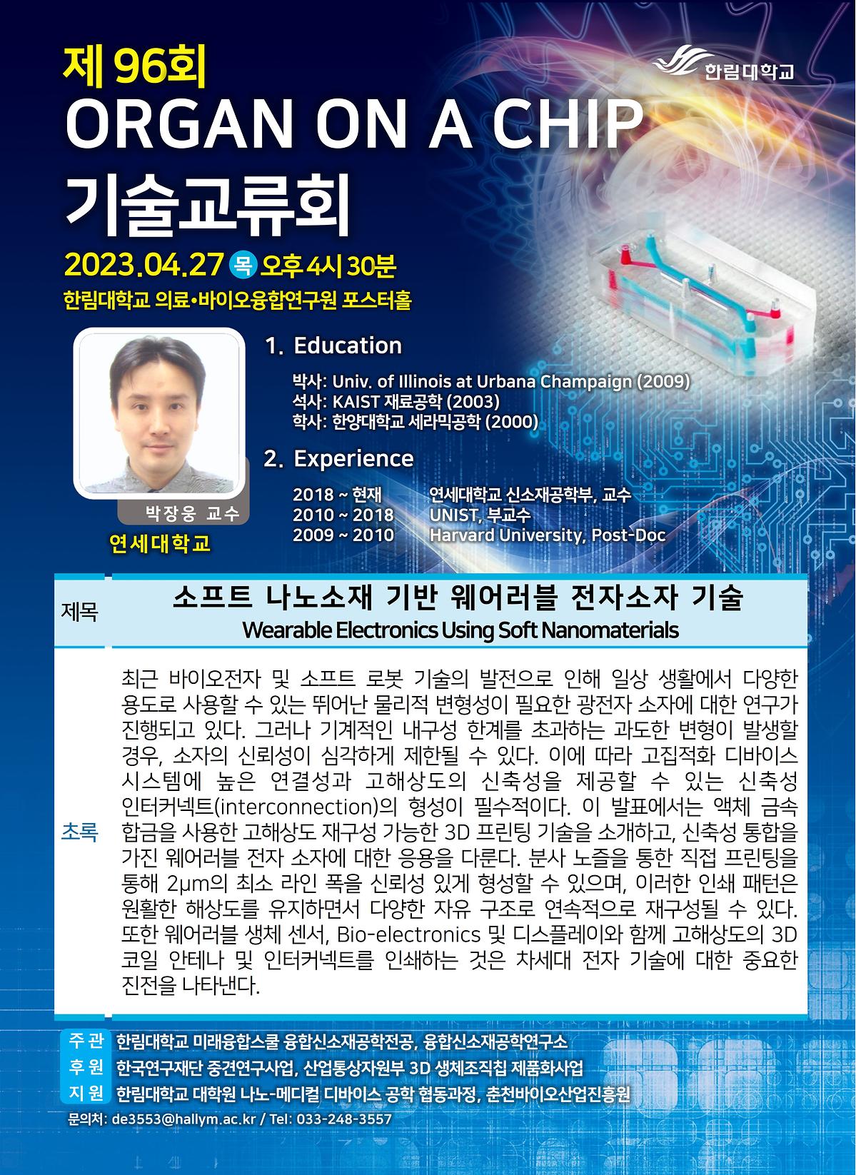 제 96회 Organ on a Chip 기술교류회가 2023년 04월27일 진행되었다.