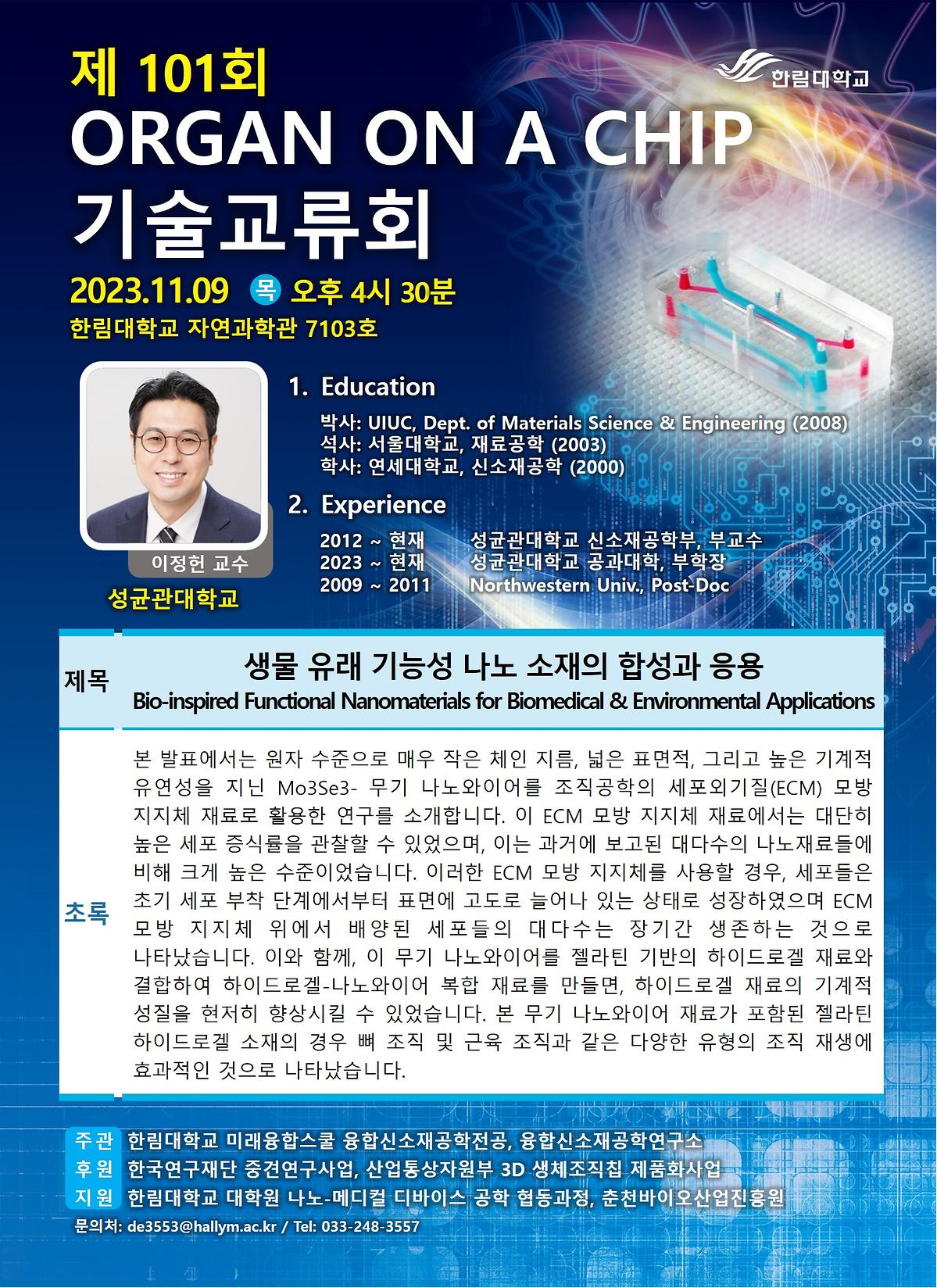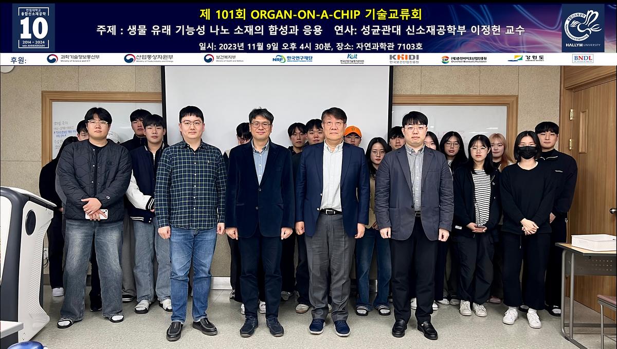 융합신소재공학 오간온어칩 기술교류회 101회 기념 강연회가 2023년 11월 09일 개최되었다.