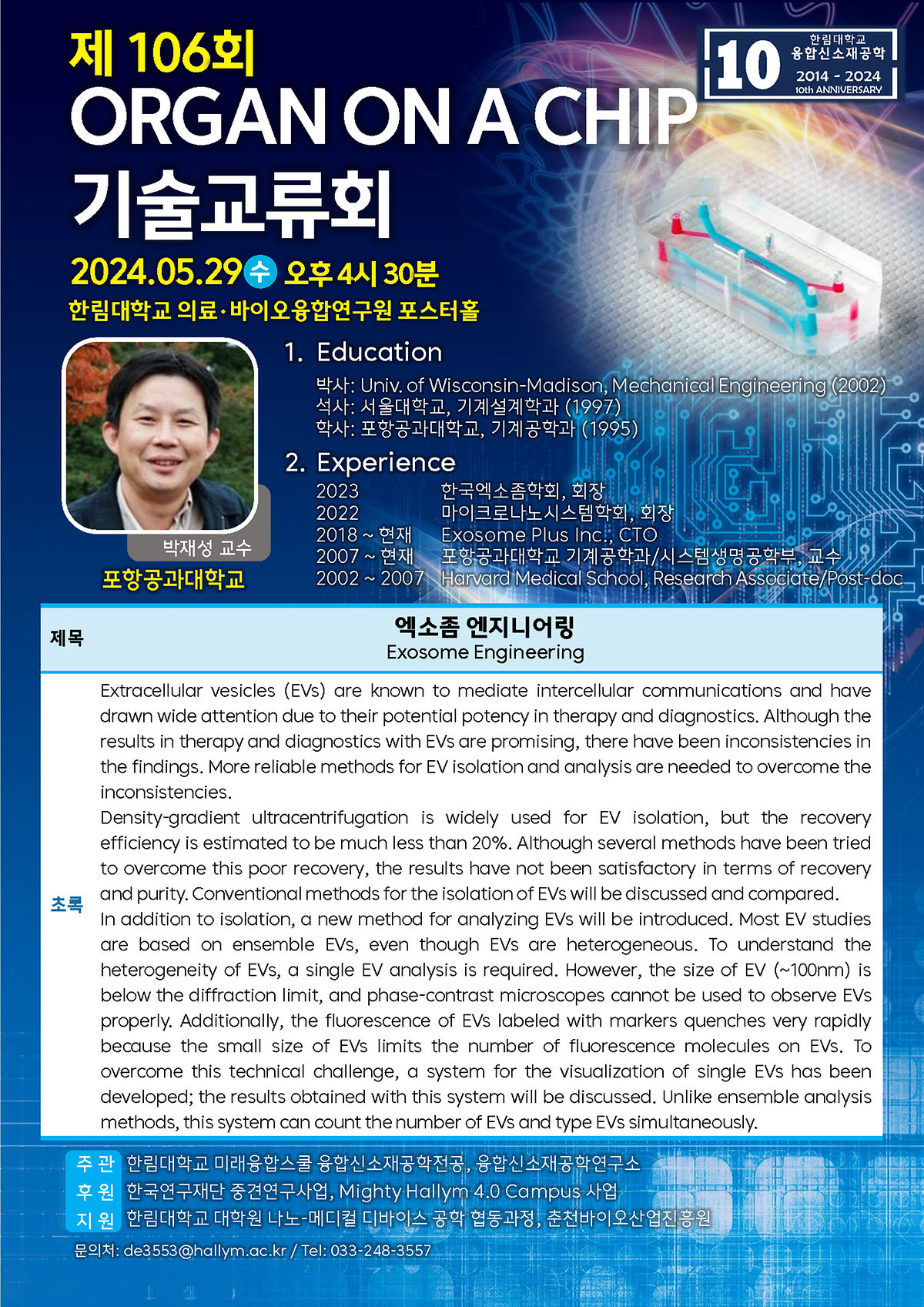 이번 기술교류회에서는 포항공대 박재성 교수를 연사로 모시고 '엑소좀 엔지니어링'을 주제로 강연이 진행되었다.