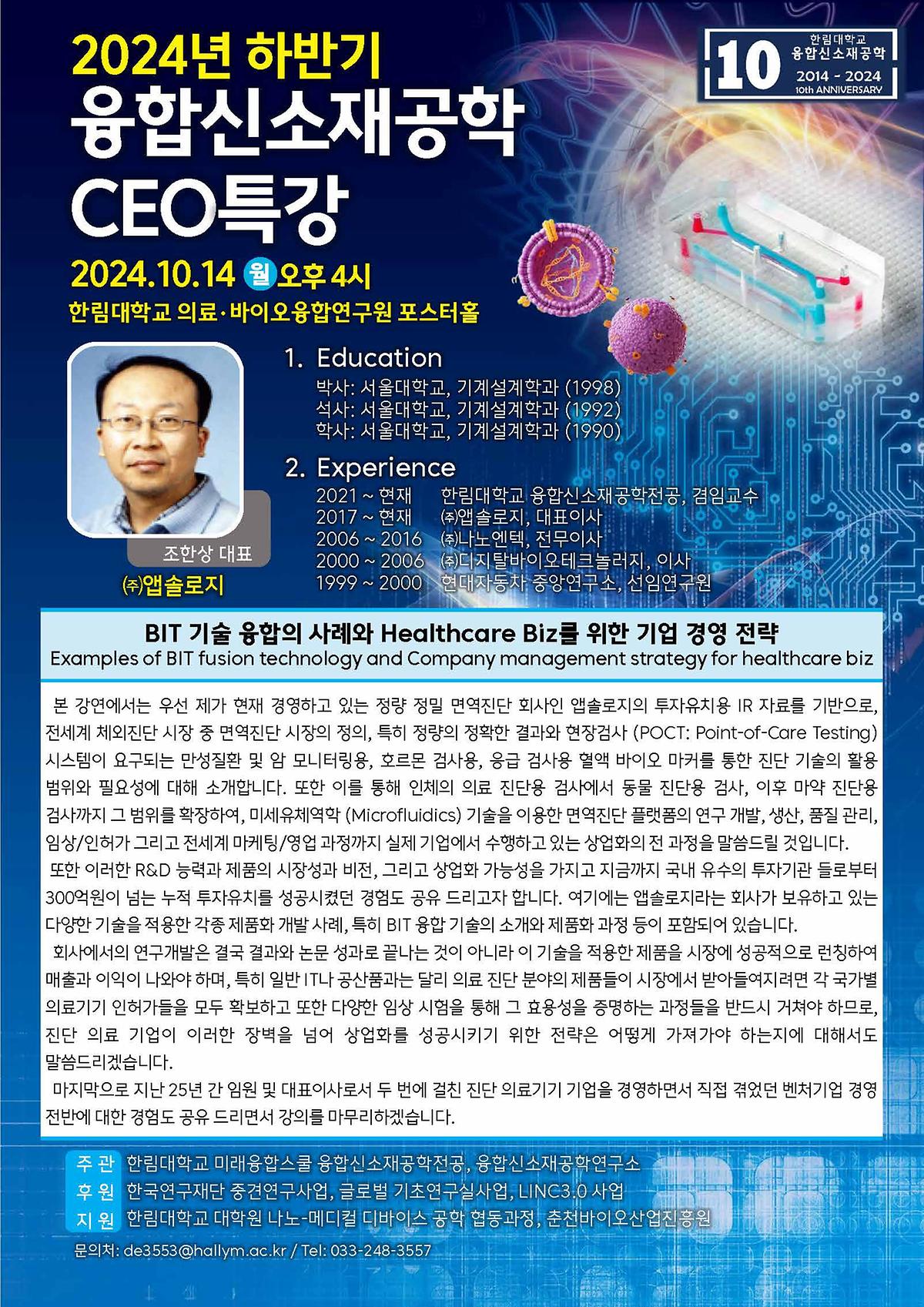 2024 융합신소재공학전공 CEO특강이 2024년 10월 14일 진행되었다.