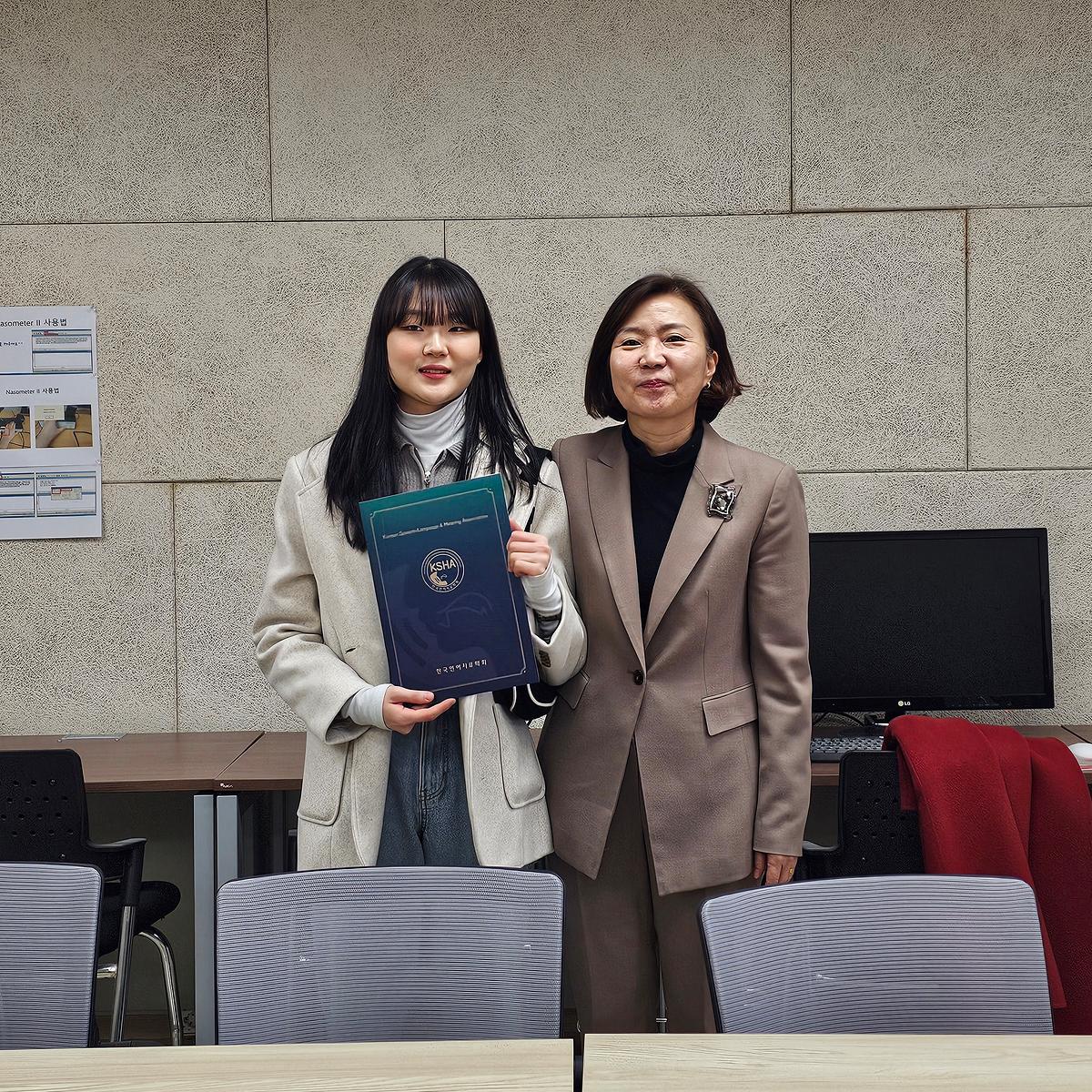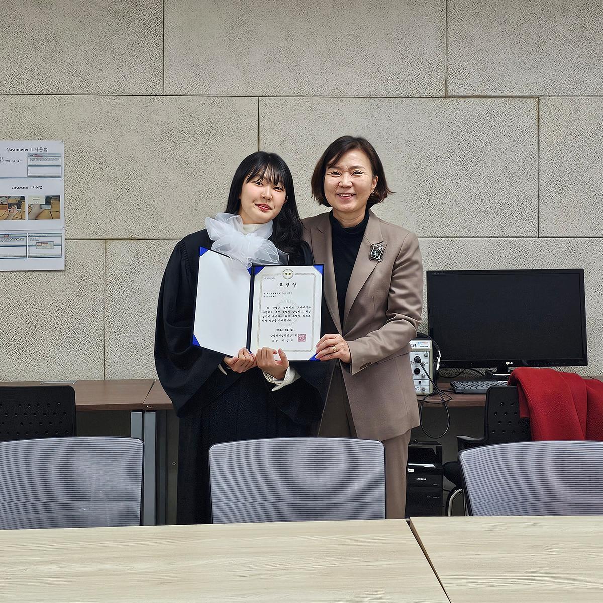 한림대학교 언어병리학전공 이소빈, 설유진 학생이 각각 한국언어청각임상학회장상과 한국언어치료학회장상을 수상하였습니다.