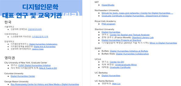 - 국내외 디지털인문학연구소와 인적, 학문적 교류 도모