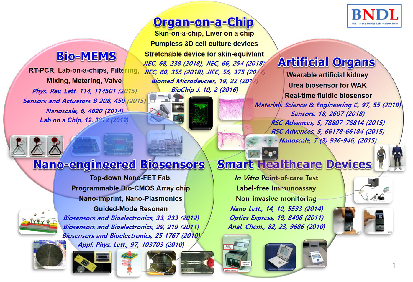 - 세포와 나노기술을 융합하여 조직이나 장기를 재구축하고 여기에 미세유체기술을 통합함으로써 의료 및 생물학 실험을 보다 생체와 유사한 환경에서 성공적으로 수행할 수 있는 체외생체칩을 구현하여 임상실험을 대체하고 개인맞춤형 치료를 위한 약물효능 확인 검사도구 제공