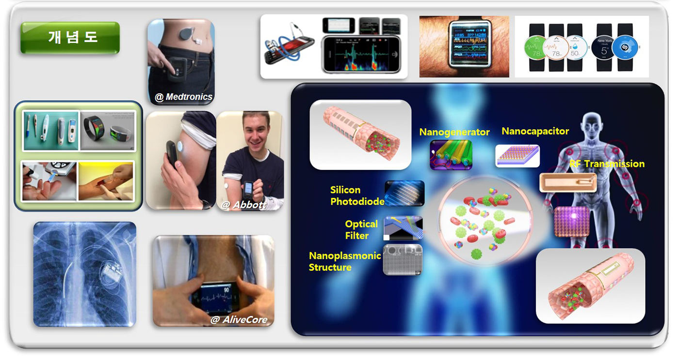 - 심장, 혈관 등 인체장기의 생체신호를 감지하여 만성질환자들의 자가진단, 실시간 원격진료, 응급치료 서비스를 제공하고, 반영구적으로 사용이 가능한 u-Health용 인체내장형 의료기기 핵심 부품 및 모듈 기술