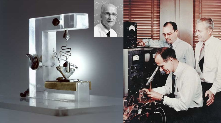 왼쪽 사진은 왼쪽부터 차례대로 트랜지스터를 발명한 윌리엄 쇼클리(William Bradford Shockley), 존 바딘(John Bardeen) 월터 브래튼(Walter Houser Brattain)
