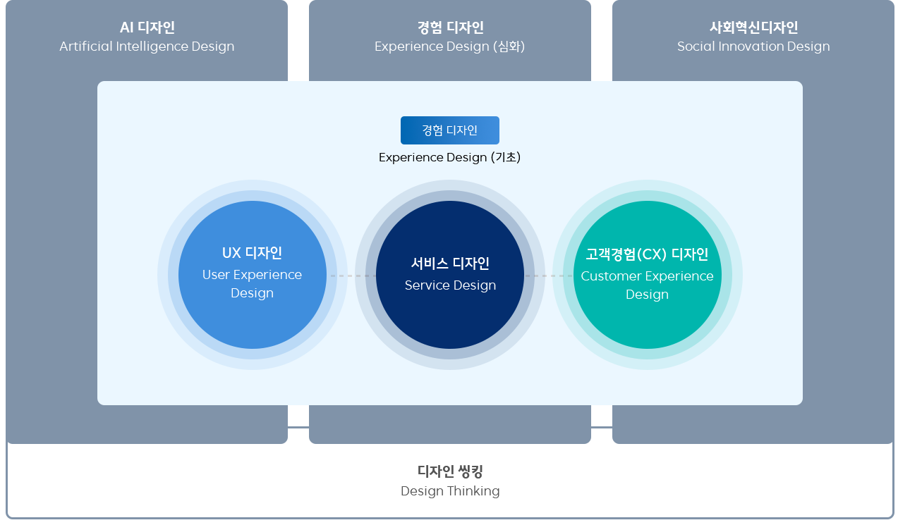 AI의 확산, ESG와 같은 사회적 가치의 실현, 고객 경험의 중요성 등이 부각되면서 디자인 분야도 인간 디자이너가 '유형의 상품의 미적 부가가치'를 생산하는 것을 넘어 인공지능 디자이너 (AI Designer) 와의 공생 속에 '무형의 사회적 가치의 경험'을 창안하는 것으로 확장적 진화를 거듭하고 있습니다. 이러한 디자인 패러다임의 전환에 맞춰 디지털 AI 기반의 기술과 인문사회적 지식을 디자인과 융합하면서 세상을 통찰하고 혁신을 구현하는 미래형 디자이너를 양성할 프로그램의 필요성이 대두되었습니다.